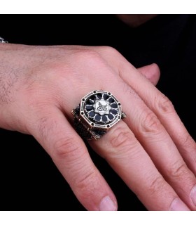 Tarihin izlerini taşıyan bu özel tasarım erkek yüzük, Teşkilat-ı Mahsusa simgesi ile güç ve vatan sevgisini yansıtıyor. Siyah zemin üzerine detaylı işçilikle öne çıkan bu yüzük, stil sahibi erkekler için ideal bir...