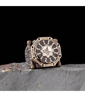 Mina Silver'ın özel tasarım Osmanlı Tuğralı gümüş yüzüğü ile tarihin ve zarafetin birleşimini parmağınızda taşıyın. El işçiliğiyle hazırlanan bu yüzük, siyah mine detayı ve oksitli gümüş yapısıyla maskülen bir şıklık...