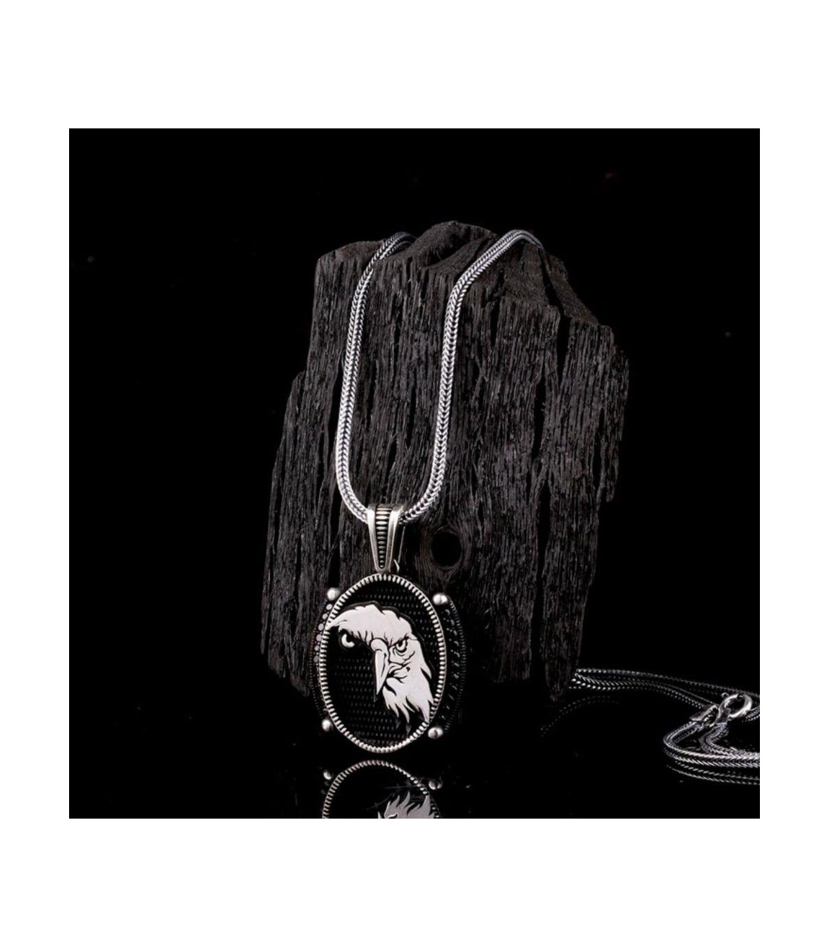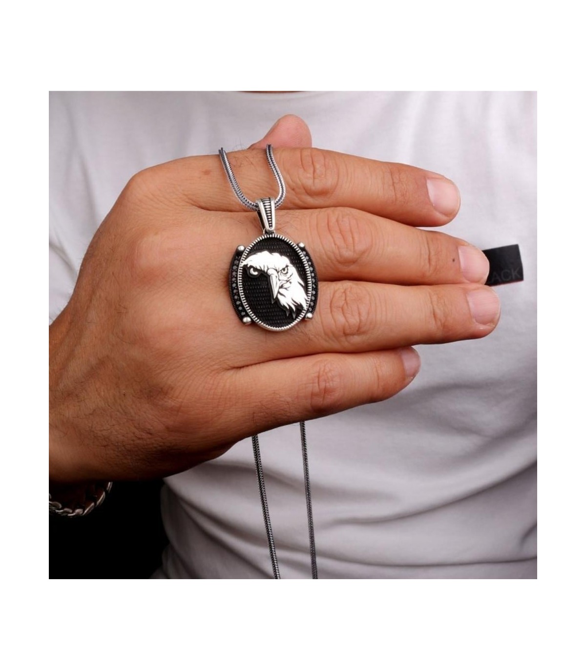 Kartalın Gücü Boynunuzda: Mina Silver Oval Siyah Mikro Zirkon Taşlı Kartal Yüzü Gümüş Kolye